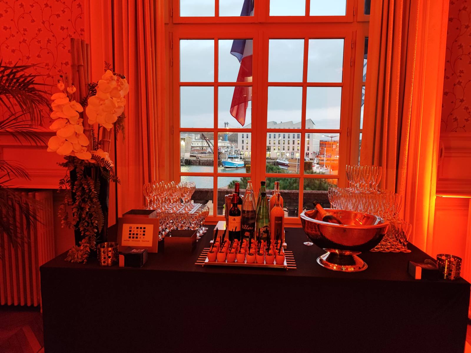 Un service de pièces cocktails salées puis sucrées avec une vue imprunable sur le port de Dieppe.
